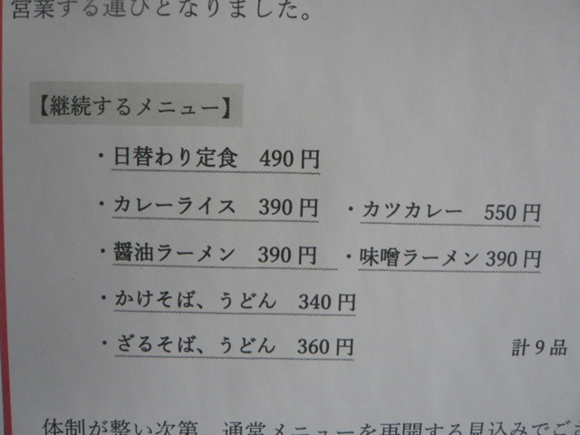 残念ながら、コロナの影響なのでしょうが、メニューが、カレーとカツカレー等の少ないメニューとなっていました。
