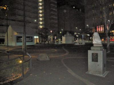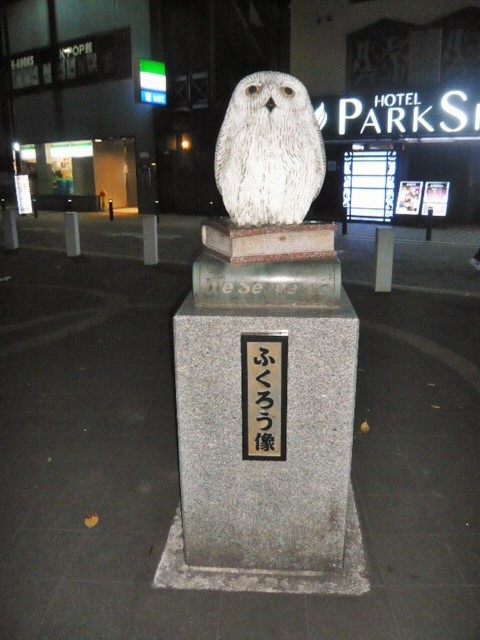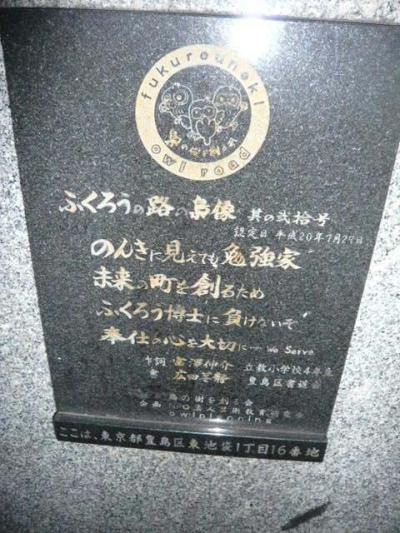 中池袋公園の西側には、フクロウの石像が置かれていますが、像の題名や由緒等が記載されてます。
