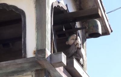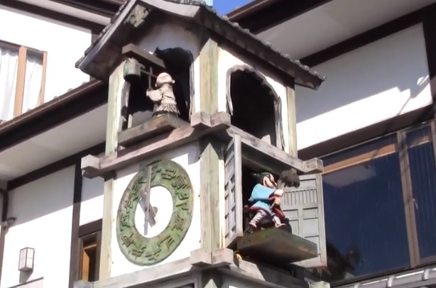 このような精巧なからくり人形が、野外の時計塔に設置されているのは、他に見られないものと思います。