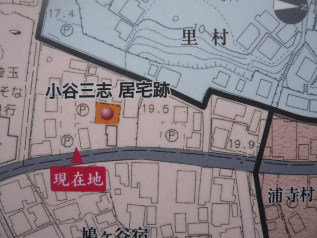小谷三志の墓所は、鳩ケ谷宿の日光御成街道の地蔵院の中にありますが、たまたま、その墓所に赴く際、小谷三志の旧居跡の標石柱を、街道沿いで見つけました。