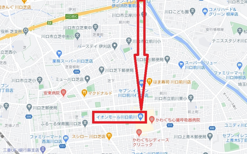 イオンモール(川口前川店)は、幹線道路に面していて便利で、かつ医療機関が近くにあります。