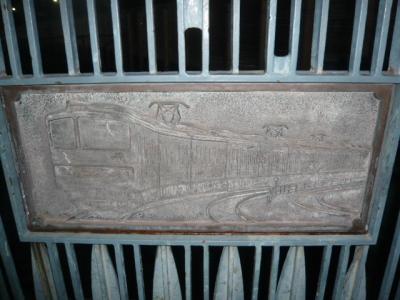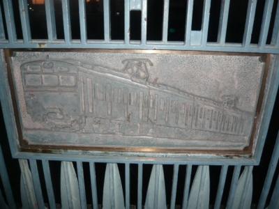 堀之内橋の親柱の傍には、JR山手線に架かる跨線橋の関係もあり、蒸気機関車や電気機関車、電車等の鉄製の絵がかけられています。