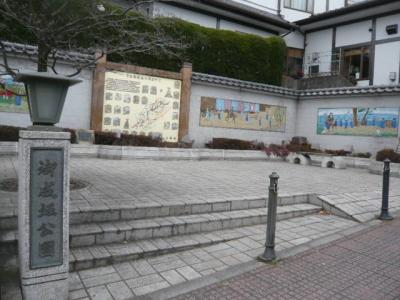 御成坂公園は、日光御成街道の鳩ケ谷宿の坂道の傍に、将軍の日光参りの様子を絵図にして紹介している公園です。