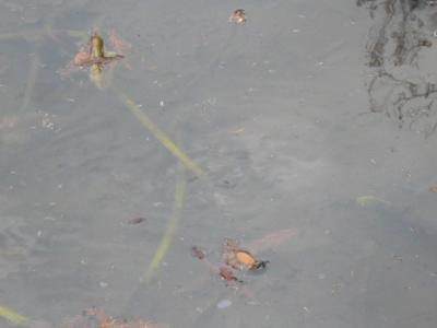 確かに、池の片隅から湧水が湧き出ていました。池の水面が揺れていましたので、水が湧きだしていることが判ります。しかし、じっと目を凝らして見ないと判らない程度の湧水量です。