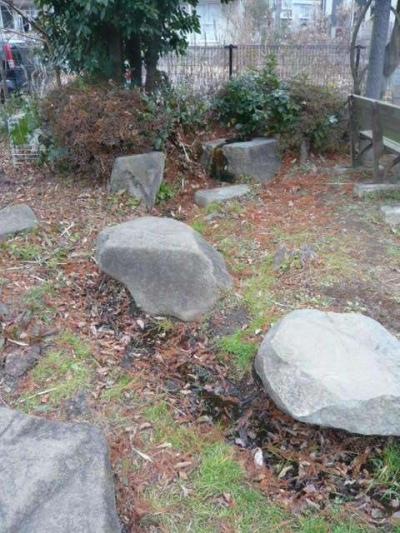 また、ベンチらしきものが無く、腰かけられる石が置かれています。