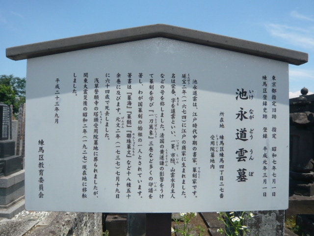 池永道雲の墓が、練馬十一ケ寺の奥の受用院の墓所地区にあります。