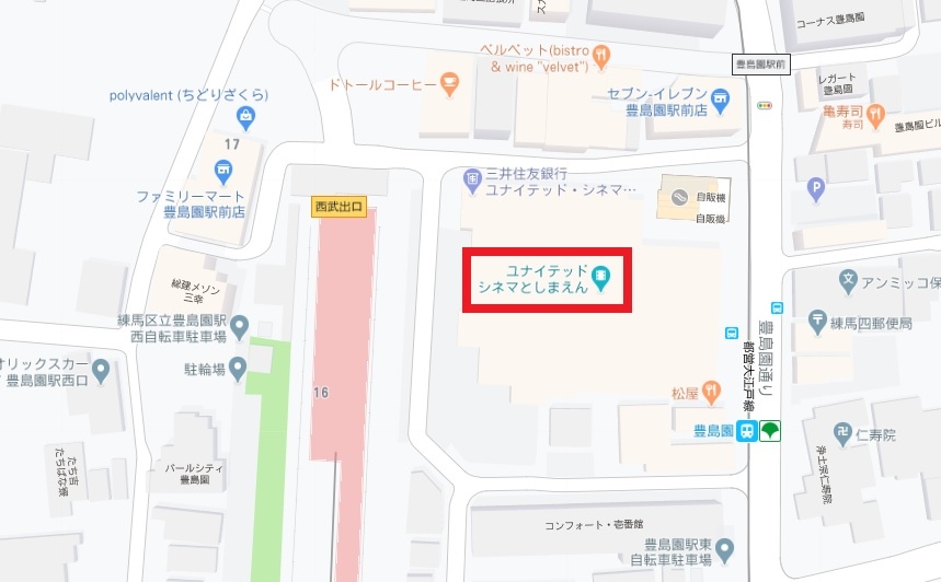 ユナイテッドシネマとしまえんは、地下鉄大江戸線豊島園駅北口の横にあります。