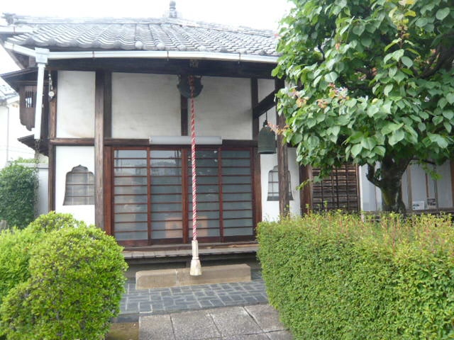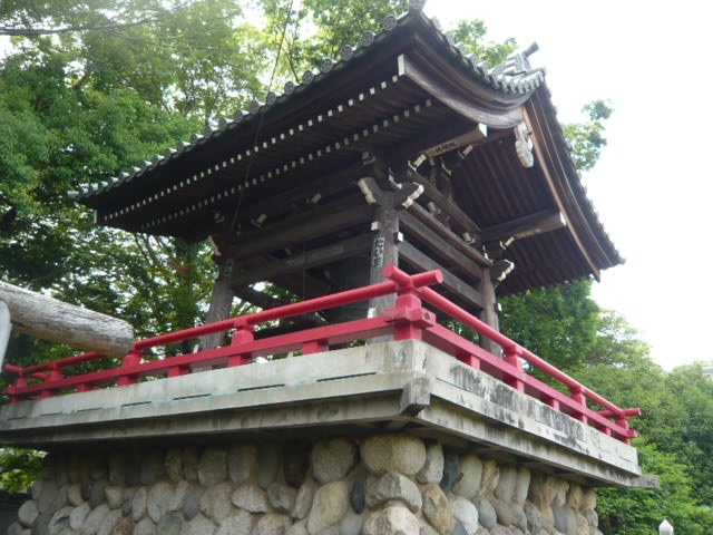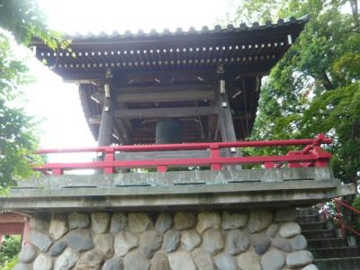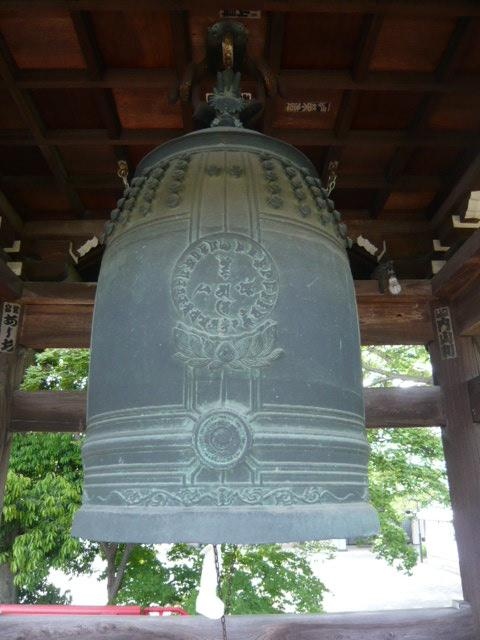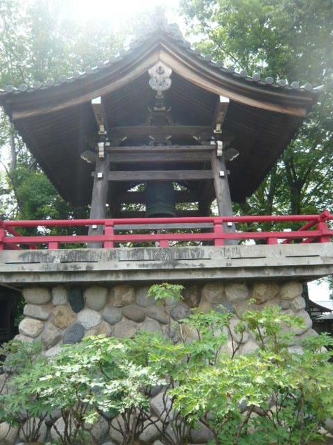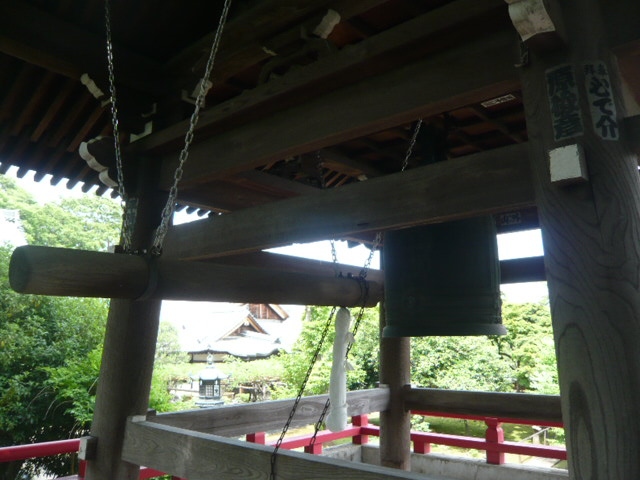 愛染院の山門を過ぎ、左側に愛染院の鐘楼があり、梵鐘が見えます。