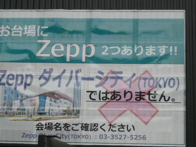 Zepp Tokyoの建物は、黒色系を主体とする塗装のもと、殺風景な感じがしていて、その上、入口が限定されていて、ライブハウス会場としては、これが本来なのか疑問を感じる状況でした。