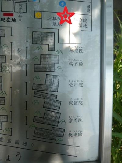 墓所区画に入って、すぐ右の迎接院の手前角という目安で探さないと、多数の墓の中で、見つけることはできないかもしれません。ご注意を!- 旅行時期