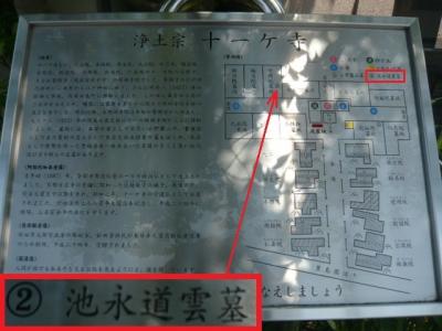 案内板がありますので、おおまかな場所は判りますが、数多くの墓の中で、果たしてどの墓が、池永道雲の墓なのかを、探すのが難しいです。