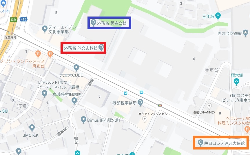 外務省の飯倉公館には、入れませんが、東側にある外務省外交史料館には、簡単な手続きで、自由に入れます。