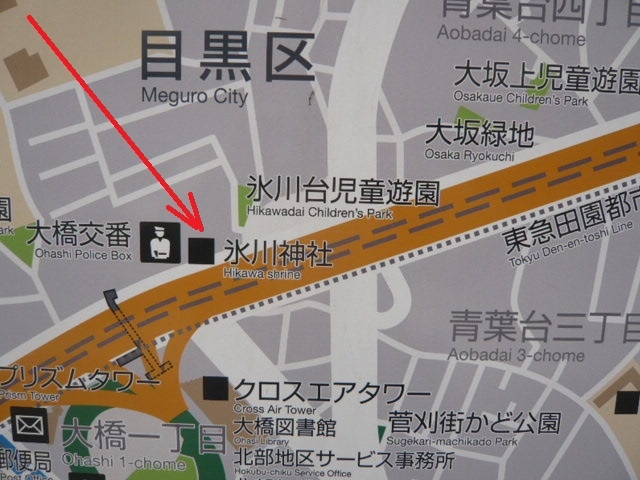 大橋の氷川神社の入口は、国道246号線沿いにあり、交番がありますので、とても判り易い場所です。