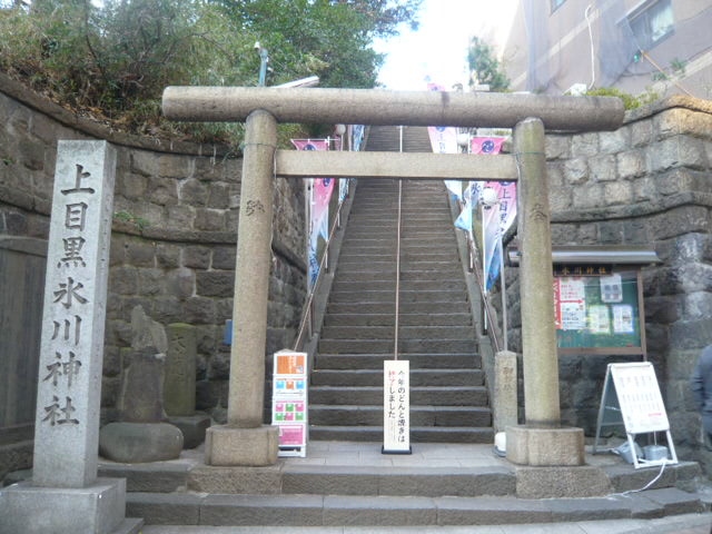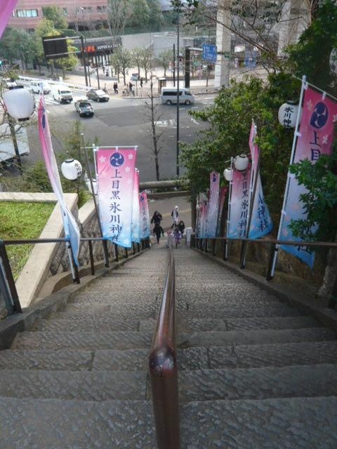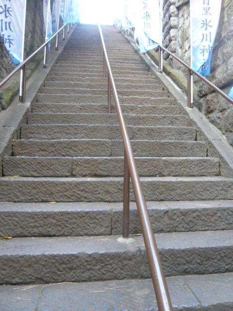 長い石段が続く階段を昇ると、氷川神社の広場になっています。