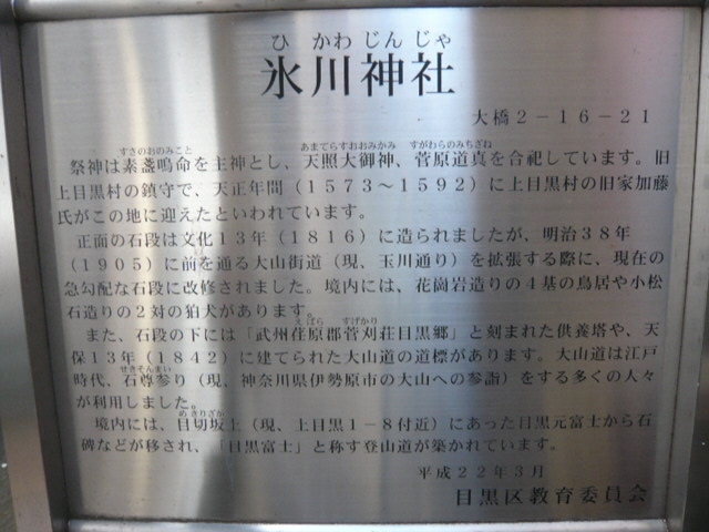 階段の昇り口に、氷川神社の由緒が記載された石板の解説板がありますが、字が細かくかつ長文なので、読む気になりません。
