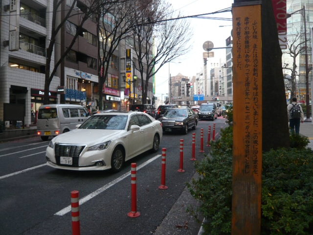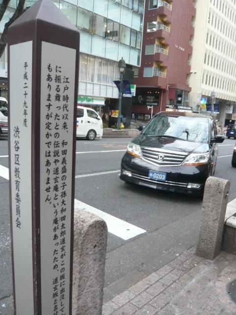 6 道路沿いには、渋谷区教育委員会の道玄坂解説柱が立てられています。