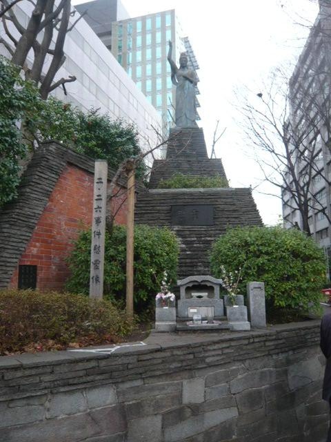 二二六事件慰霊像は、渋谷のNHK放送センターの南向かいにあります。東京法務局の横です。