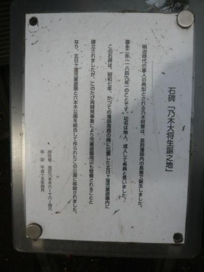 乃木大将誕生の地の石碑は、六本木ヒルズの南側にありますが、誕生の地は、毛利藩邸の跡です。