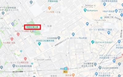 慰霊像は、現在の東京法務局や渋谷税務署が入っている渋谷の合同庁舎の西側に在ります。