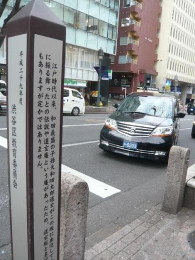道玄坂由緒碑には、渋谷氏が北条氏綱に亡ぼされた史実、大和田太郎道玄がこの坂の傍に道玄庵を造って住んだこと、道玄坂の由来、青山街道の歴史、山手線となる品川鉄道の建設、芥川龍之介・柳田國男の通学、坂下の新詩社の創立、林芙美子の夜店等が記載されていて勉強になります。