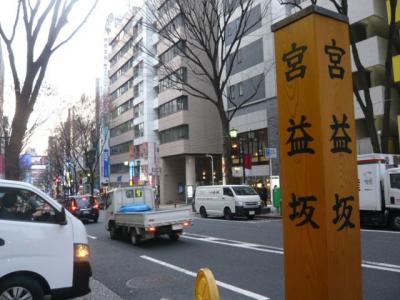 また御嶽神社の門前町の位置づけと富士が見えるお茶屋の役割りから、宮の利益を頂くという意味から、宮の利益が転じて、宮益坂となったと言われています。