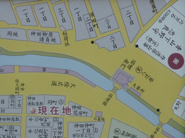 筋違門の場所は、須田町に在りとの記述がありますが、現在の住居表示でも、須田町です。
