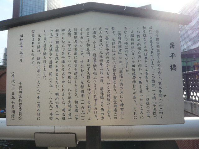このため、孔子の生まれ故郷の昌平郷の名称に因み、この橋の名称を「昌平橋」とするよう命ぜられました。
