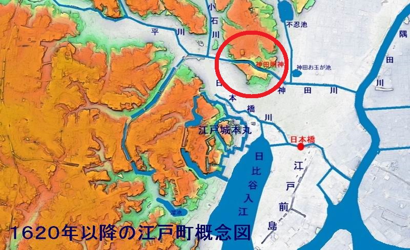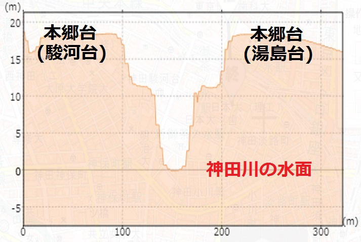 このため、江戸初期には、本郷台として一体であった地形が、現在の湯島聖堂のある湯島台と駿河台に、神田川で分けられてしまいました。