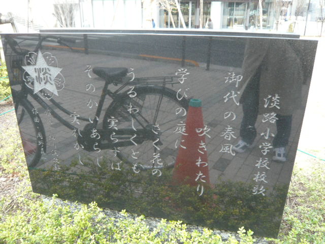 公園内には、移転した淡路小学校の記念碑があります。