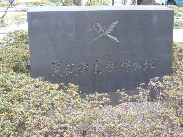 それよりも、興味深いのは、有名な開成学園発祥の地の石碑が置かれていることです。