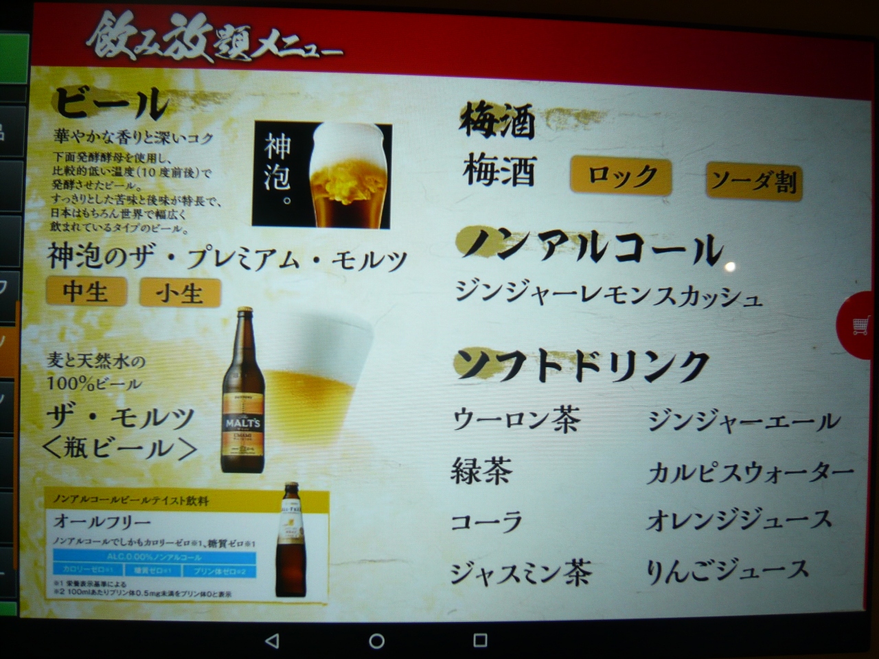 飲み放題も、ビールの数量や銘柄の制限のない本来の飲み放題でした。
