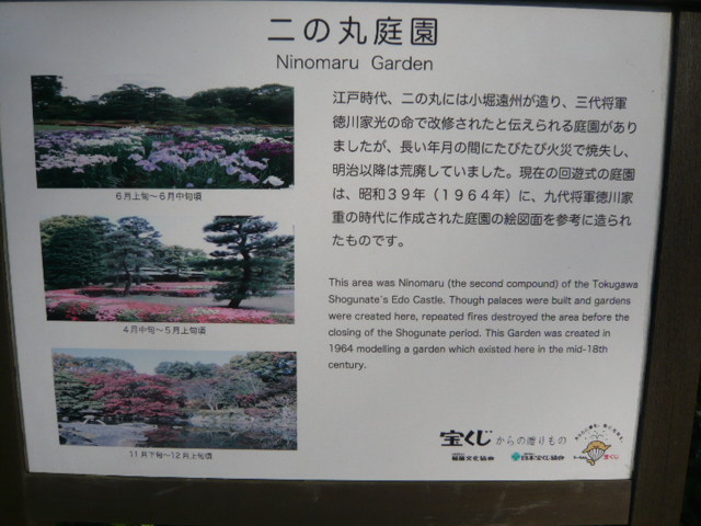 現在の二の丸庭園は、昭和39年に、9代将軍徳川家重の時代の古絵図に基づき、復元されたそうです。