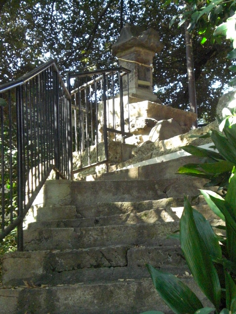 頂きに上がる石段にも、石がふんだんに使われています。