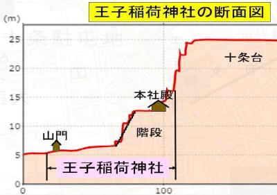 王子稲荷神社の構成は、十条台の東側の台端の急勾配の地形を利用した設計になっています。
