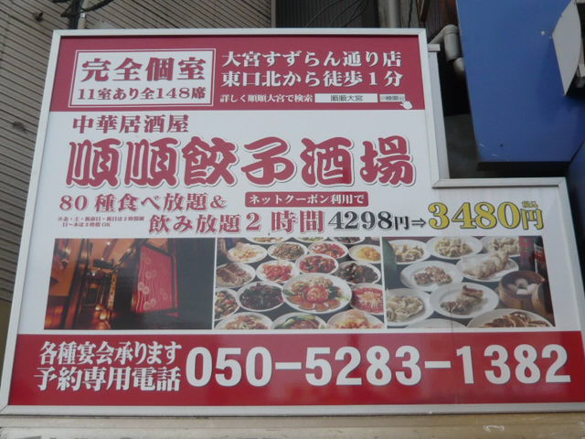 順順餃子酒場は、ほぼ満席でした。事前に、予約して置いて良かったです。人気店のようです。