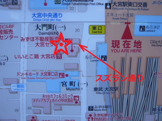 大宮駅東口を出て、スズラン通りの中ほどの2階にあります。