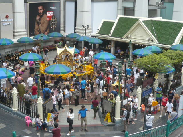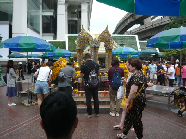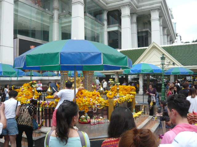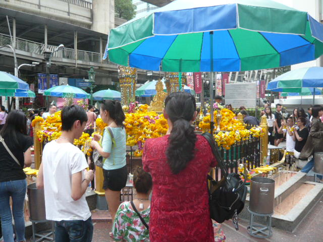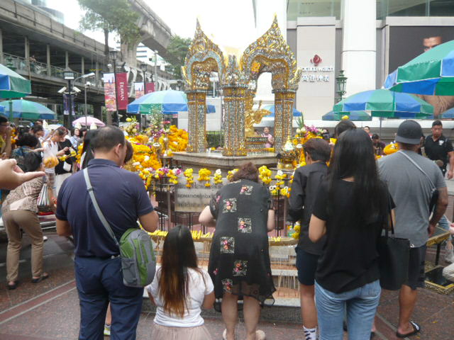 エラワン廟は、ラーマ1世通りとラチャタムリ通りの交差点の角地にあり、信者で賑わっている祠です。