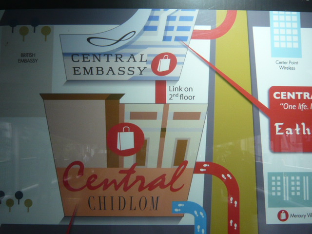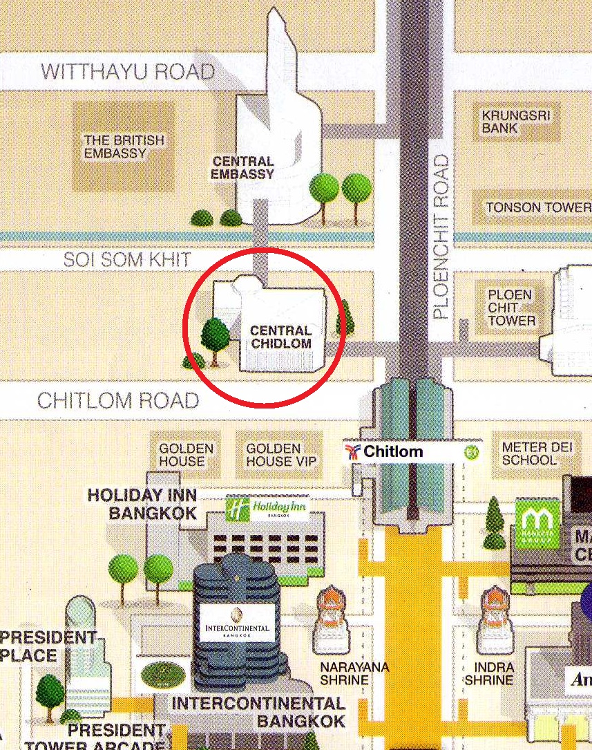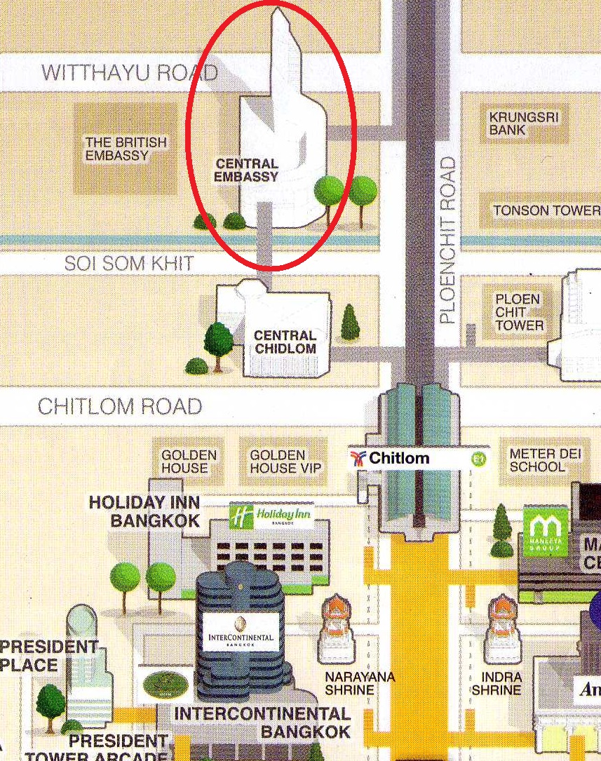 セントラルエンバシーは、チットロム駅の東側にあり、セントラルデパートと繋がっています。