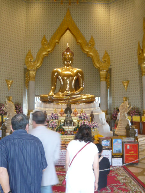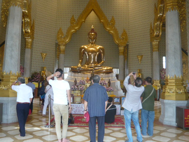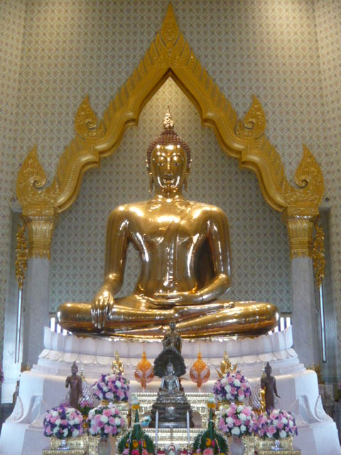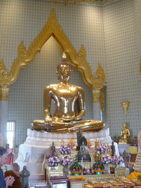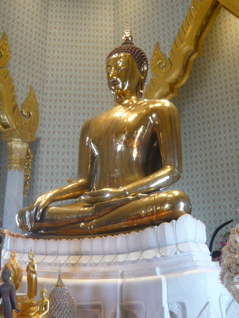 黄金色の仏像は、多数あり、ほとんどが、表面に黄金箔を貼ったものがですが、ワット・トライミットの黄金仏は、全体すべてが、黄金で、高さは3m、全重量5.5トンの金で鋳造されています。