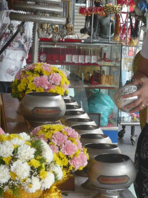 ワット・トライミットは、中華街の東端に位置していますが、いつも信者の方々が数多く訪れています。