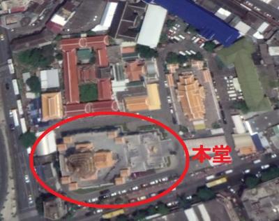 ワット・トライミットの本堂は、広い敷地のうちの南西部の最も高い建物です。