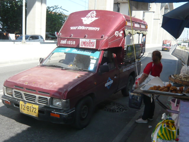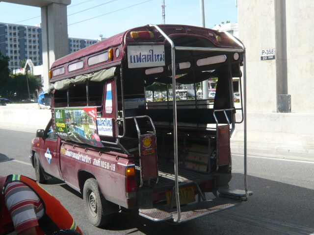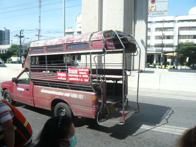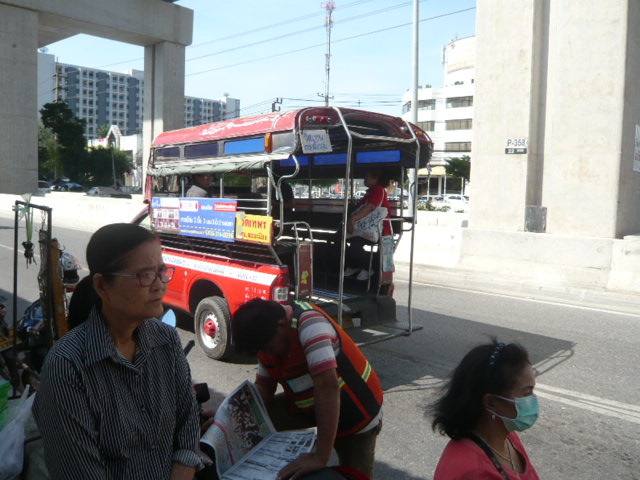 バンコクの繁華街では、ソンテウは見かけませんが、国際空港ドンムアンの傍で、見つけました。