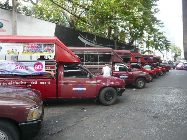 バンコクのソンテウは、スラサックや南側のサムローン付近で、利用する機会がありましたが、バンコクの繁華街の中で、走っている姿は、見かけませんでした。