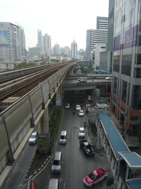 サイアム駅とチットロムの駅の間には、高架道が設けられていて、地上の渋滞にもかかわらず、自由に行き来できるのが大きな理由かもしれません。