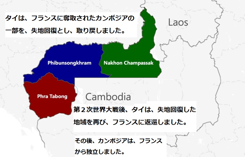 タイが領有していたカンボジアを、フランスが軍艦の力でタイから奪い取ったパークナム事件に発端があります。