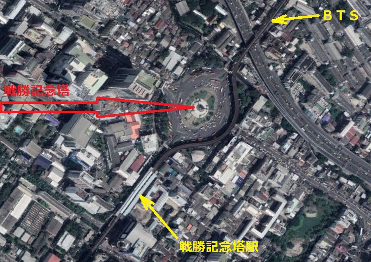 BTSの戦勝記念塔駅は、戦勝記念塔の南側にある駅です。ロットゥー等の発着所は、移転しました。