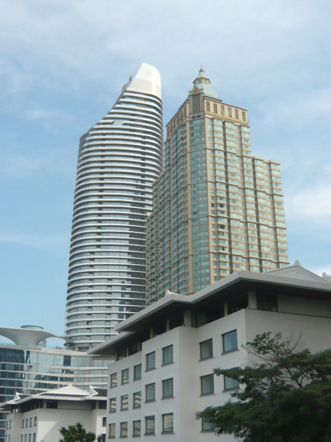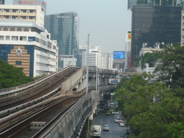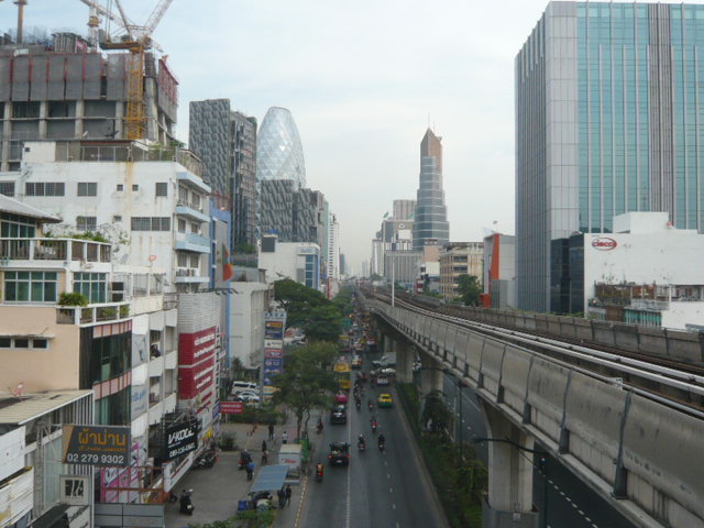 目を街並みの中に転じますと、BTS線路沿いまた駅の周辺には、のっぽビルが立ち並び、その中をオシャレな人々が闊歩しています。