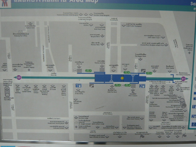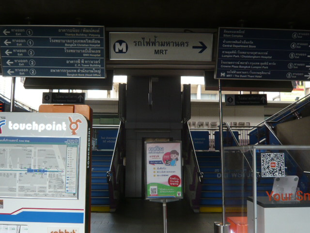 BTSのサラデーン駅は、シーロム通りにあり、ラーマⅣ世通りの地下鉄シーロム駅との乗換駅です。