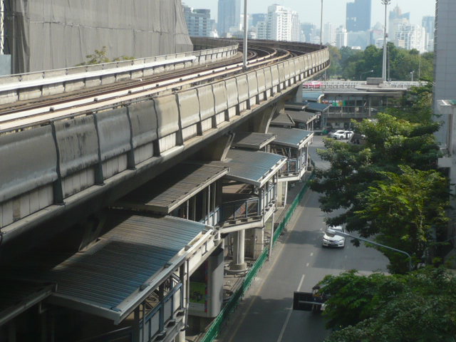 高速道路とその下の鉄道の線路を越え、西に進むとBTSプルンチットの駅です。