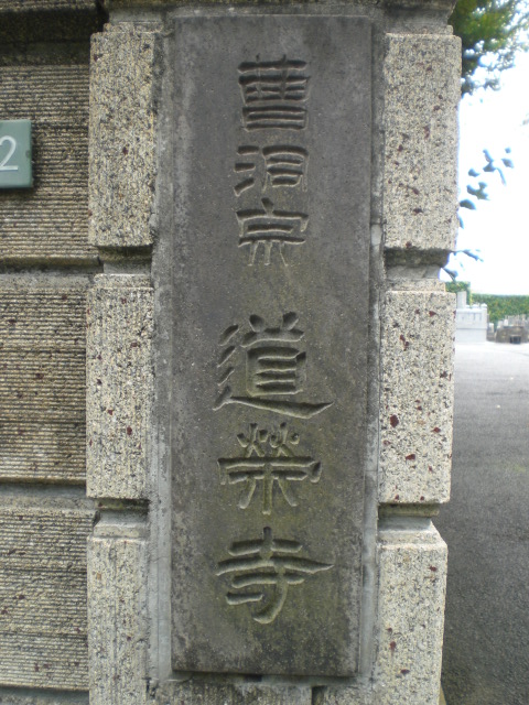 左側の門柱には、道栄寺との表札があり、右側には、花携山との表札が掲げられています。